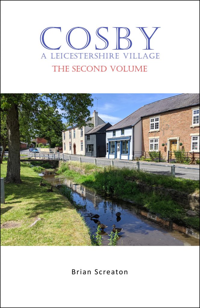 The first book contains 216 pages and over 500 colour and black and white illustrations. Ten chapters explore the history of buildings and their residents along the principal roads in the village. Cosby brook has a chapter and six appendices cover additional subjects such as the Great Fire of Cosby, the Tithe Barn, the Armston and Arnold families, Cosby Wake, and a local World War One hero. This book has proved extremely popular and only a limited quantity now remain.
